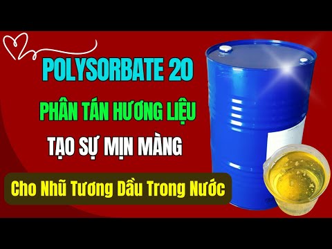 Polysorbate 20 hay còn được gọi với tên gọi thông dụng là Tween 20.Hợp chất tồn tại ở trạng thái lỏng, nhớt; hợp chất hữu cơ này có màu biến đổi từ vàng đến vàng xanh và sôi ở nhiết độ lớn hơn 100 độ C.